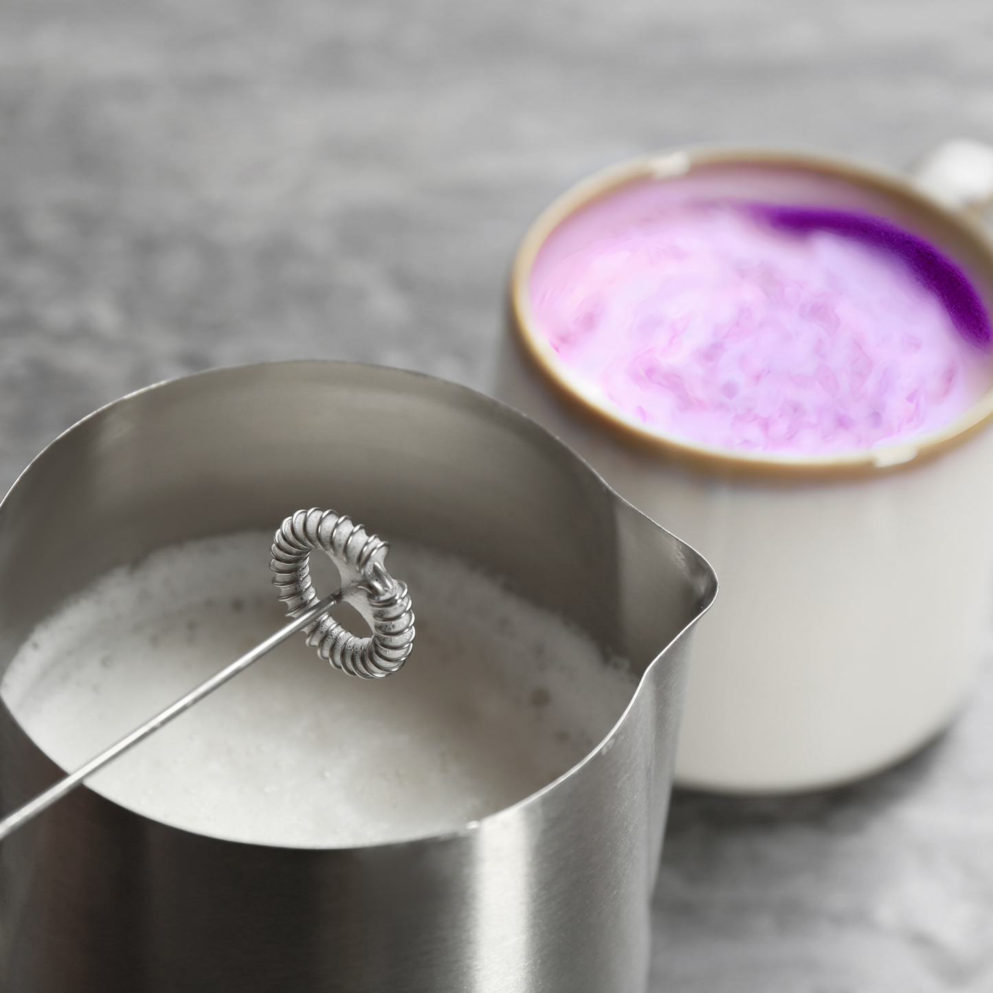 Prix régulier €19,99Un mousseur à lait électrique en acier inoxydable brossé équipé de deux embouts interchangeables et conçus spécialement pour travailler toutes les textures de vos boissons à l’ube :